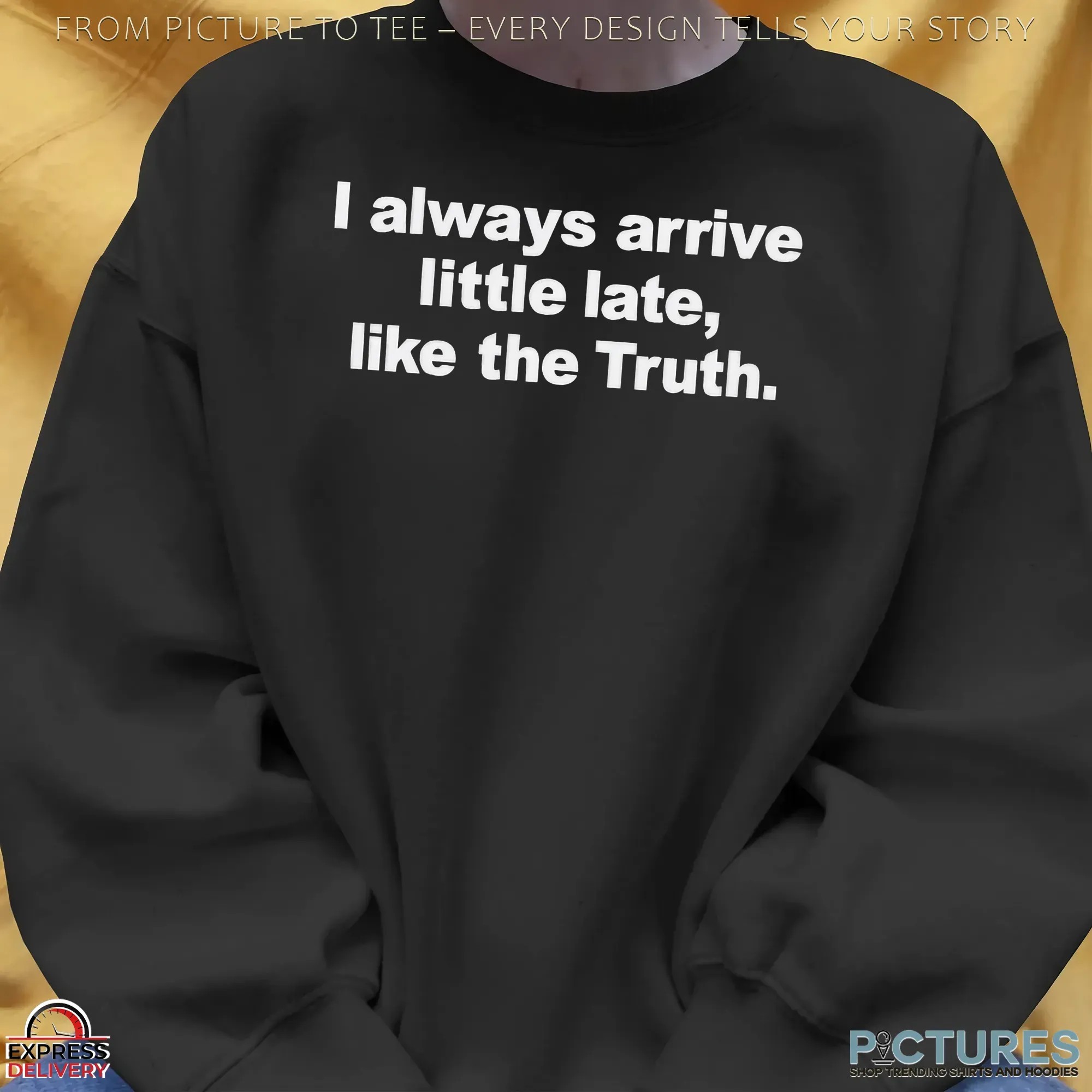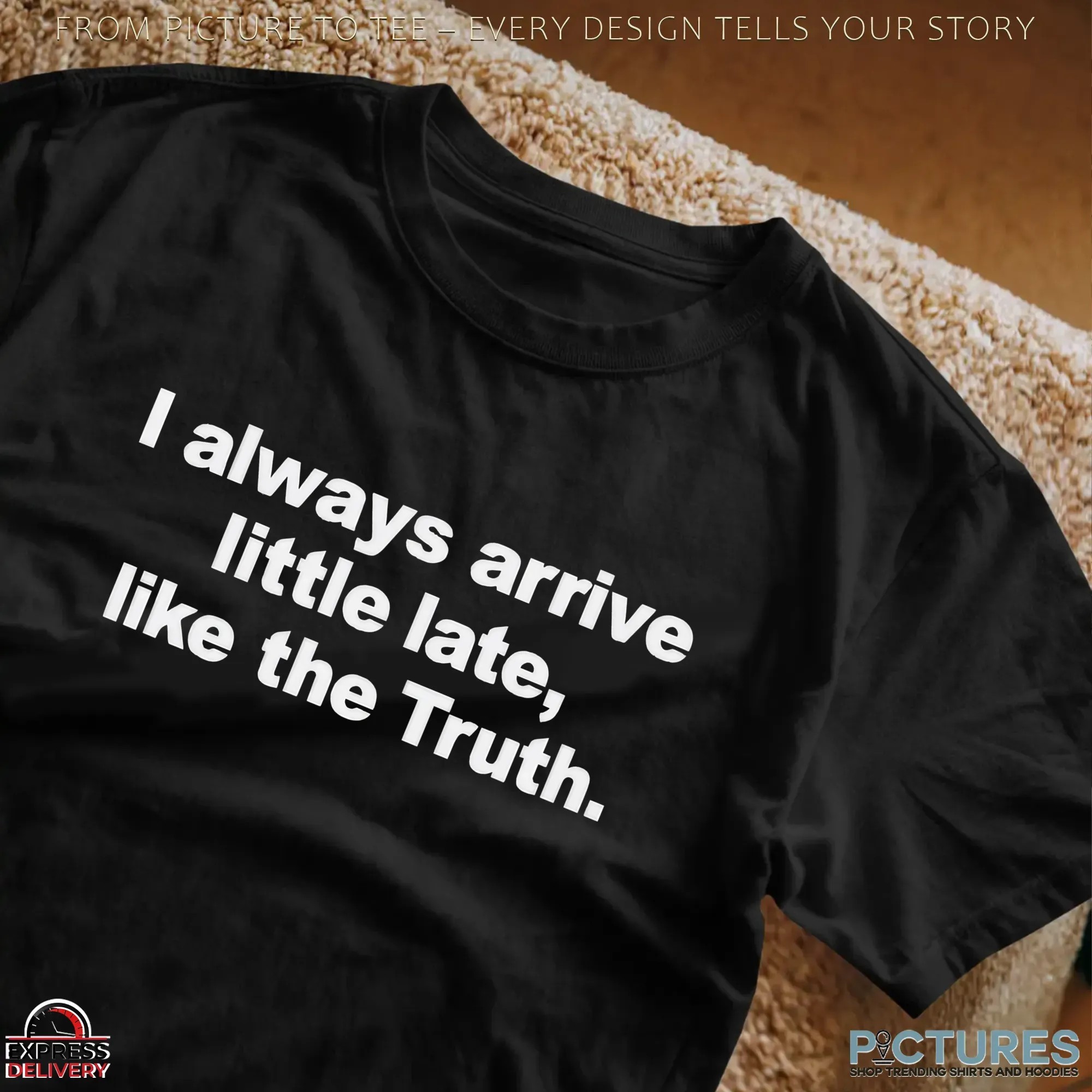 Always Arrive Little Late Like The Truth Meme T Shirt , hoodie, sweatshirt, women t-shirt, youth tee, tote bag, mug