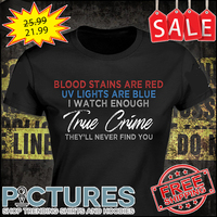 Blood stains are red UV lights are blue I watch enough true crime they’ll never find you shirt