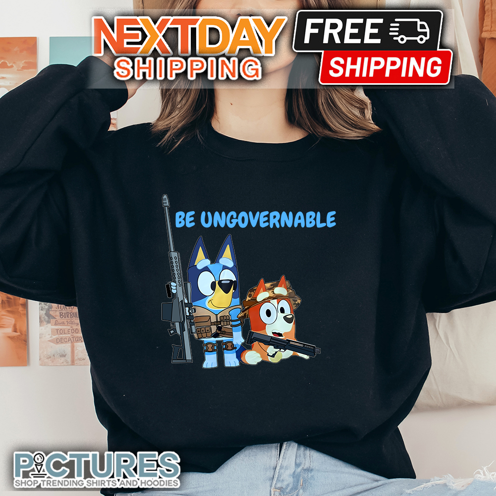 The animation style of “Bluey” is vibrant and visually appealing, with each character bursting with personality. Bluey’s family is made up of her dad Bandit, her mom Chilli, and her younger sister Bingo. Together, they navigate the ups and downs of Bluey Army Be Ungovernable Shirt childhood, showcasing the unique dynamics of family relationships. The show’s writing is clever and heartwarming, filled with humor and genuine emotion. It strikes a perfect balance between entertaining children with its playful antics and engaging adults with its thoughtful storytelling.