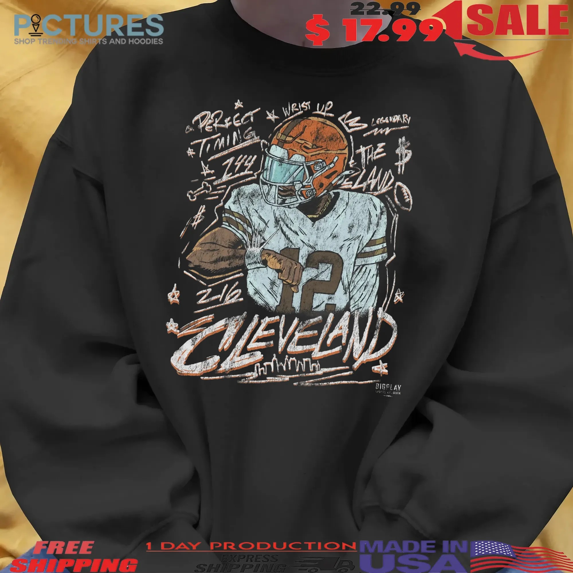 When it comes to the Cleveland Football Perfect Timing T Shirt, quality matters, and picturestees.com sets itself apart from the rest. Our commitment to delivering superior products means that you receive a shirt that not only looks great but also lasts through countless washes and wears. With options to customize your shirt with unique text, images, or logos, you’re sure to find the perfect fit for your style and personality.