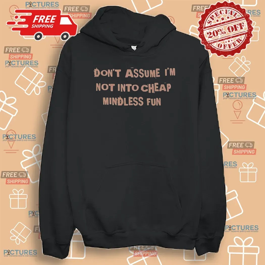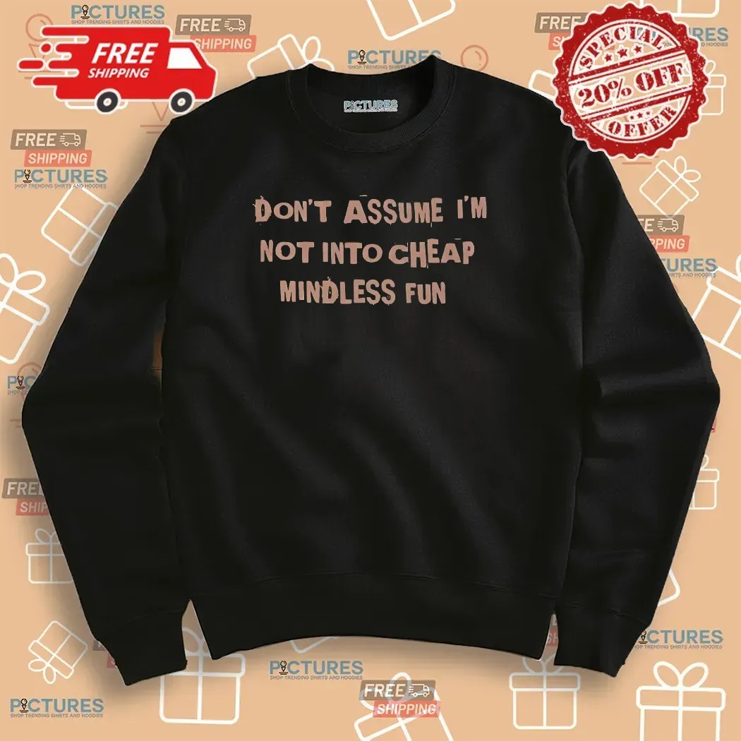When it comes to selecting the “Don’t Assume I’m Not Into Cheap Mindless Fun T Shirt,” picturestees.com stands out as the go-to destination. Our commitment to quality means that every shirt is crafted to perfection, ensuring a comfortable fit and a lasting impression. In addition to the fun text, we offer a variety of options, including custom images and logos, so you can truly make this shirt your own. Our user-friendly ordering process and diverse selection of styles—including hoodies, sweatshirts, tanks, and more—make it easy to find exactly what you want. Whether you’re shopping for yourself or looking to surprise someone special, picturestees.com has everything you need to express your individuality with flair.