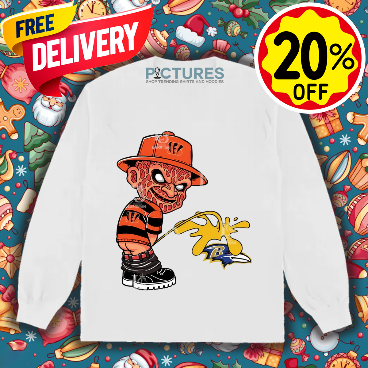 Freddy Krueger Cincinnati Bengals Piss On Baltimore Ravens Halloween 2024 NFL Shirt