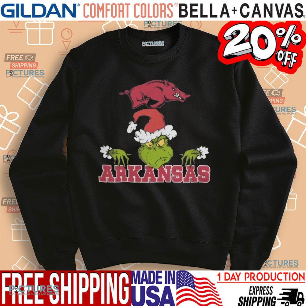 Grinch NCAA Arkansas Razorbacks Logo Football Christmas 2024 Shirt