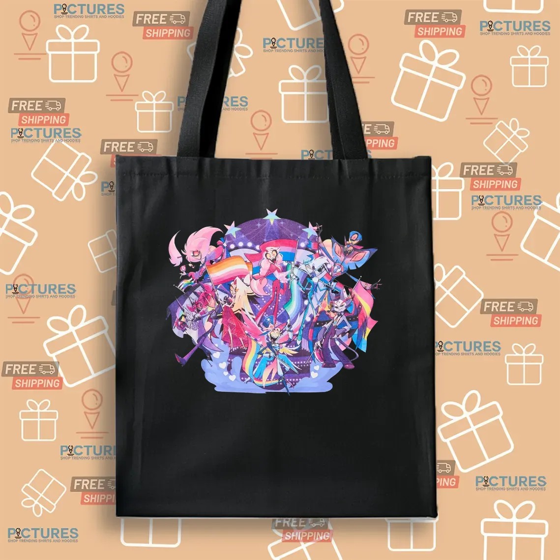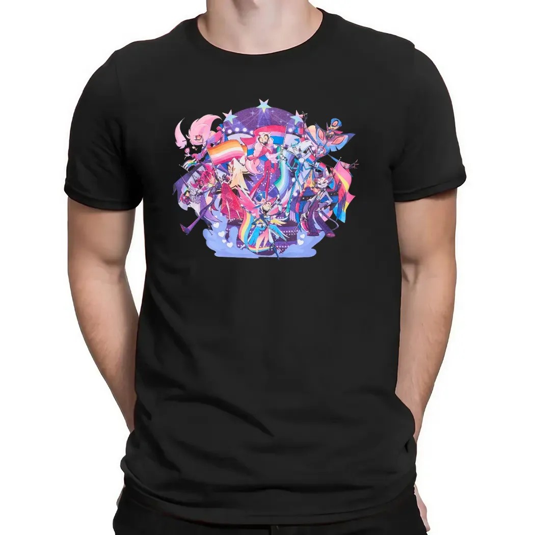 - Vibrant Design: Featuring stunning artwork of the Hazbin Hotel cast adorned in rainbow colors, this T-shirt not only represents your favorite characters but also celebrates inclusivity. Stand out in a crowd and express your pride with every wear.