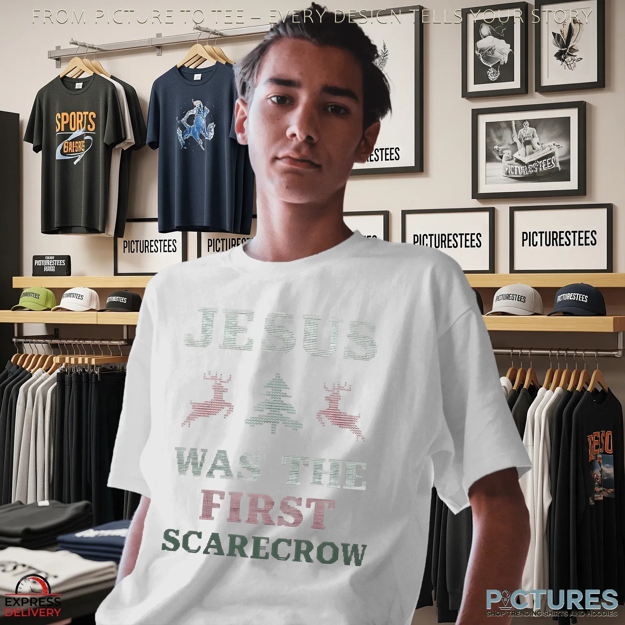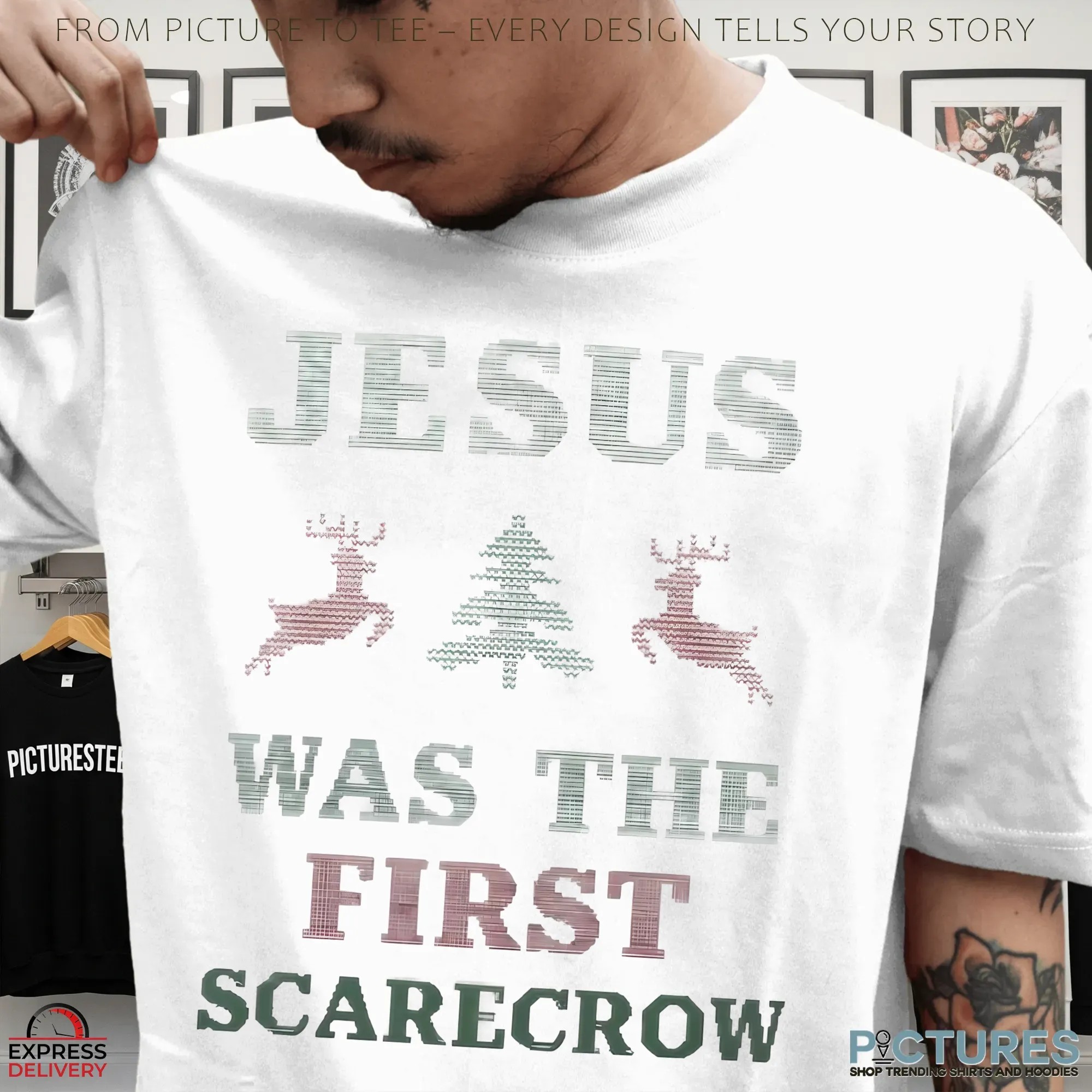 Jesus Was The First Scarecrow Ugly Christmas T Shirt , hoodie, sweatshirt, women t-shirt, youth tee, tote bag, mug