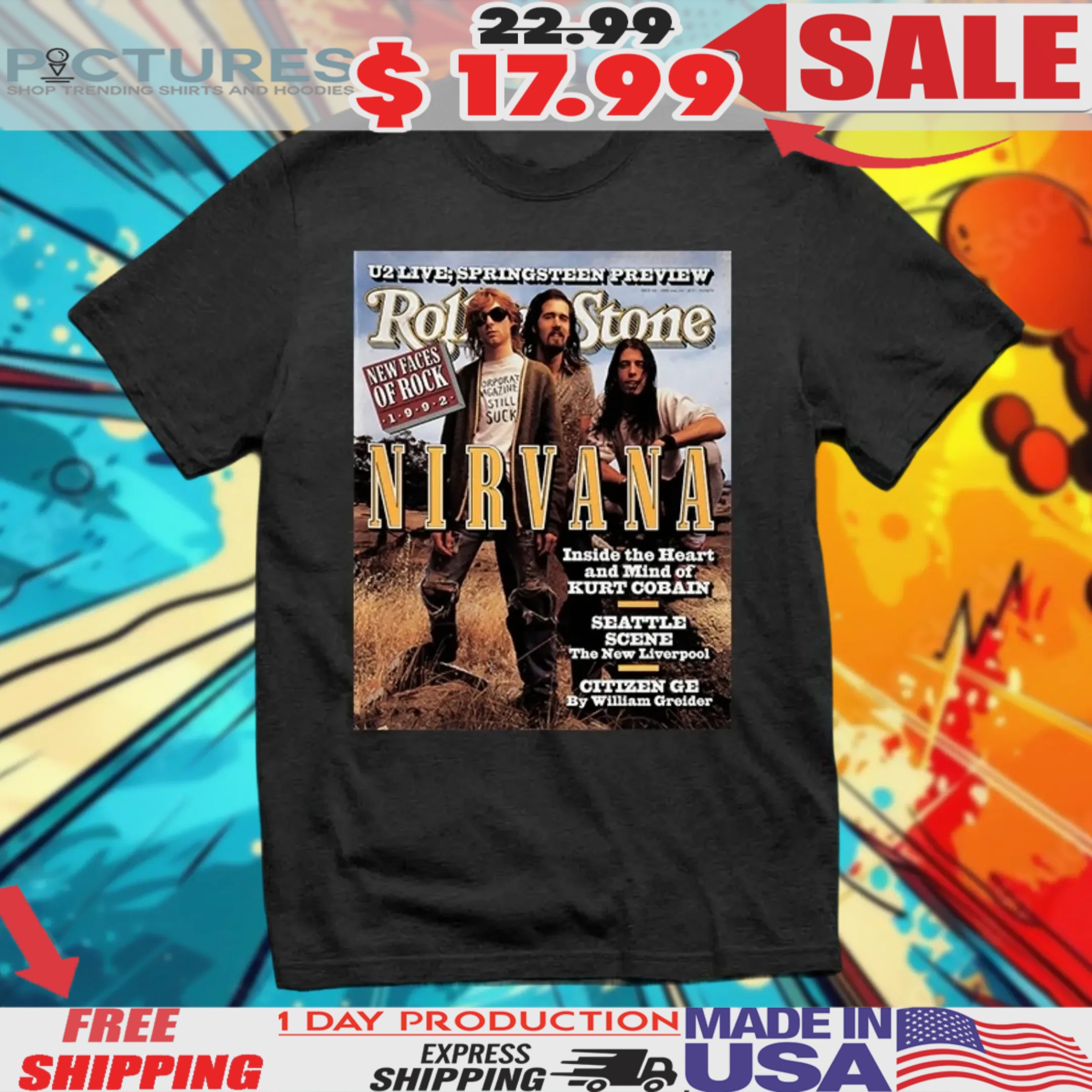### Experience the difference today with the Nirvana Rolling Stone Kurt Cobain New Faces Of Rock Shirt! Celebrate the spirit of rock and express your unique style while enjoying the comfort and quality that this shirt provides. Add it to your wardrobe and join the legacy of rock!