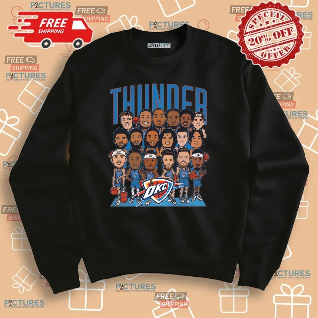 Oklahoma City Thunder NBA 2024-25 Roster Caricature T Shirt , hoodie, sweatshirt, cropped tee, youth tee, infant baby bodysuit