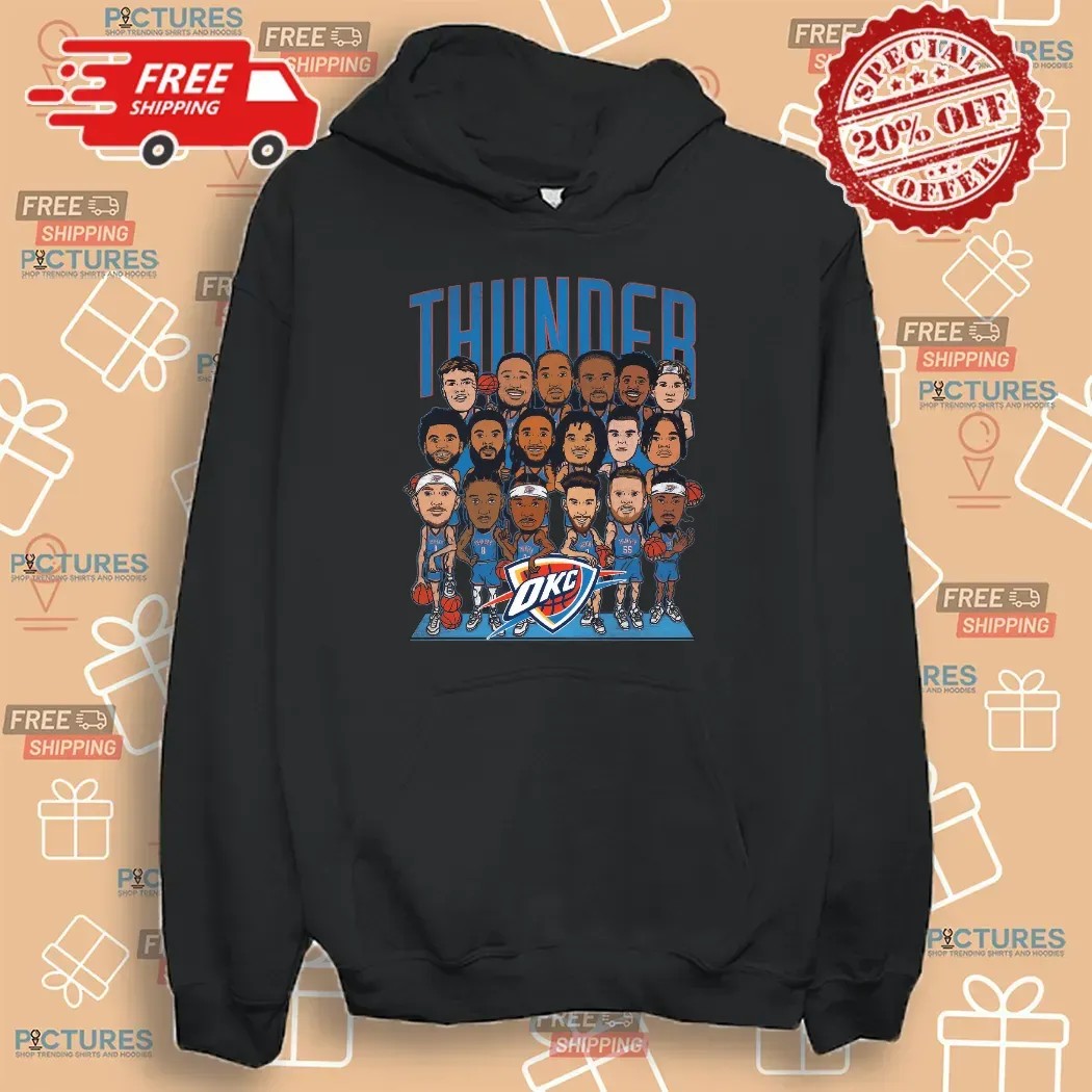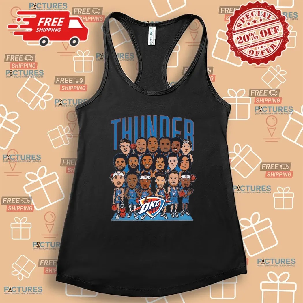 Elevate your fan gear collection and show your Thunder pride with the Oklahoma City Thunder NBA 2024-25 Roster Caricature T-Shirt. Discover the difference today and wear your team colors with pride!