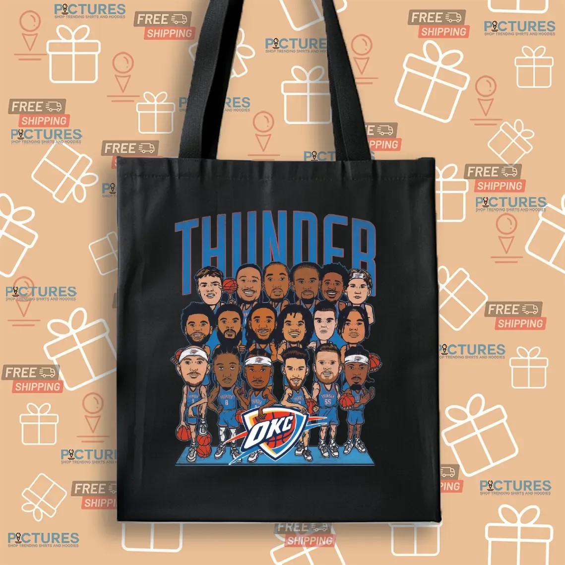 - Eye-Catching Caricature Design: The striking caricature artwork features the entire 2024-25 Oklahoma City Thunder roster. Benefit: This bold design allows you to showcase your support for each player, making it a conversation starter and a standout piece in your wardrobe.