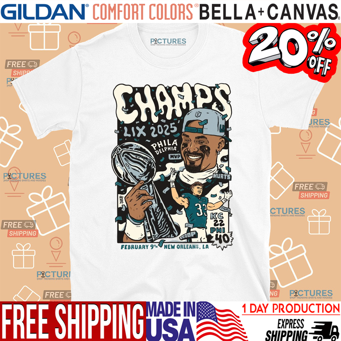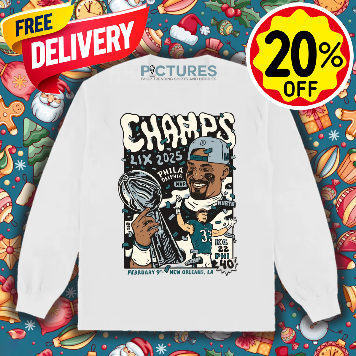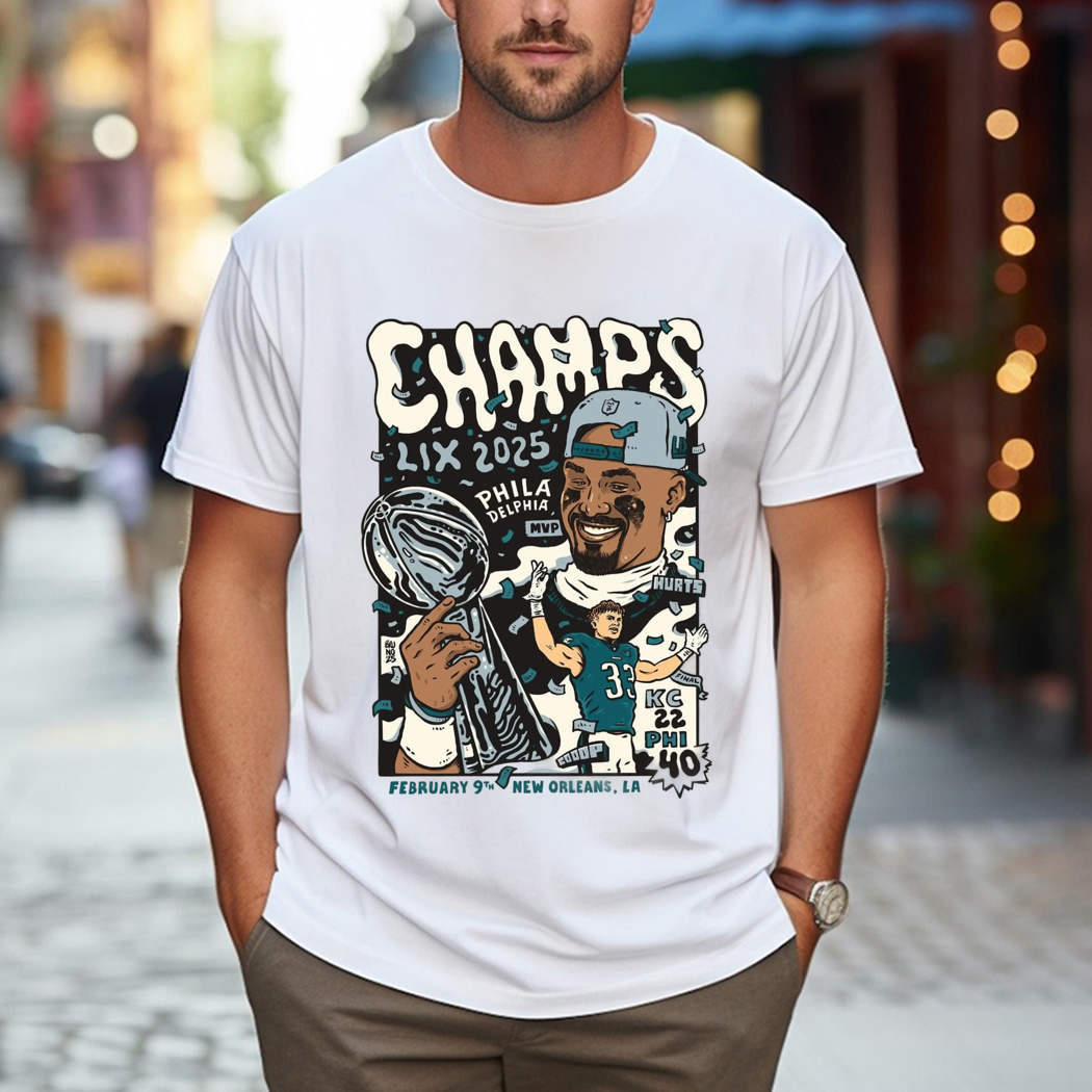 Philadelphia Football Jalen Hurts Champs LIX 2025 Feb 9 New Orleans LA Shirt