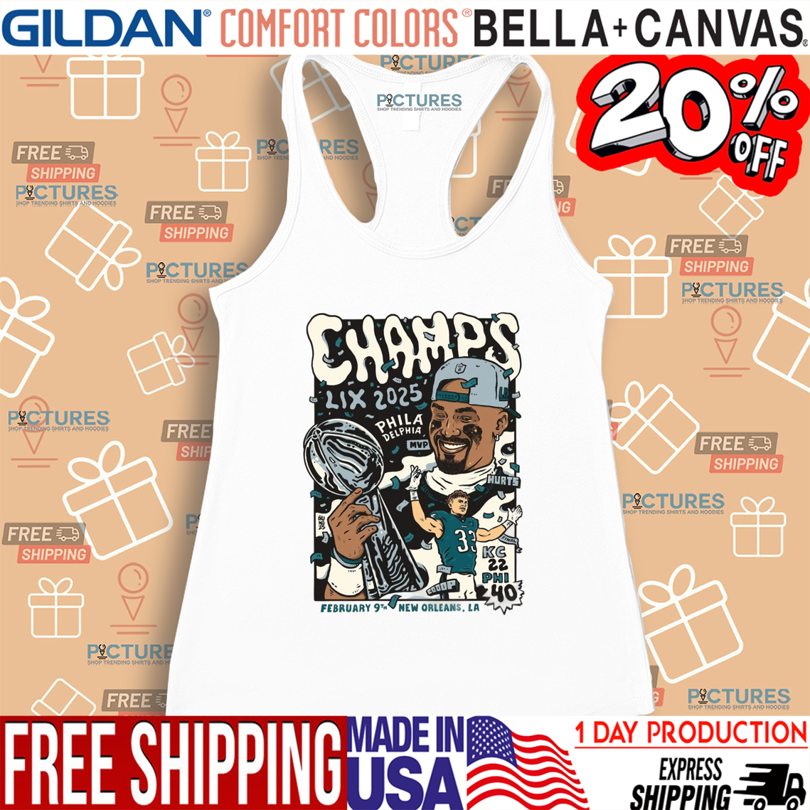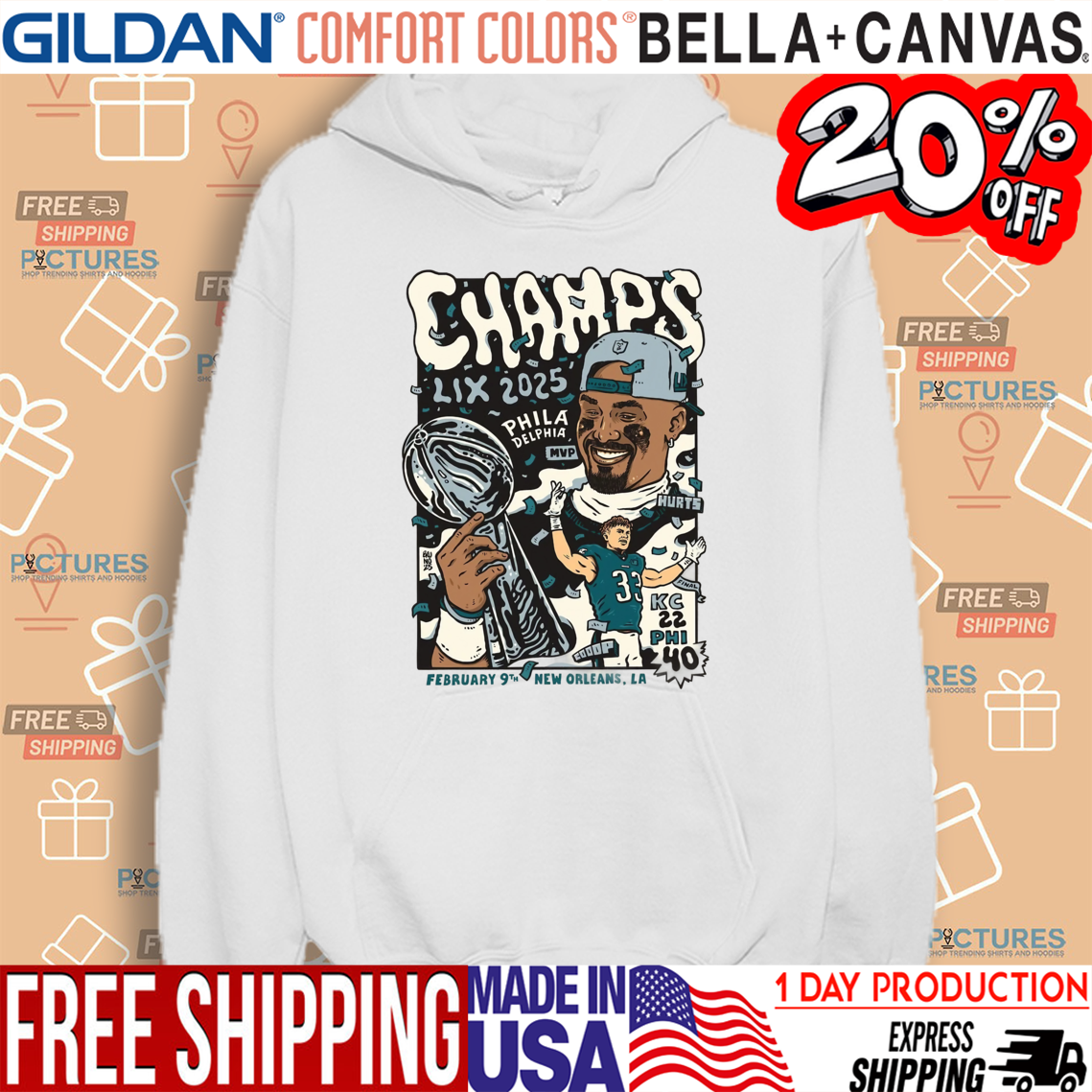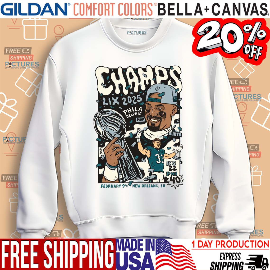 Philadelphia Football Jalen Hurts Champs LIX 2025 Feb 9 New Orleans LA Shirt