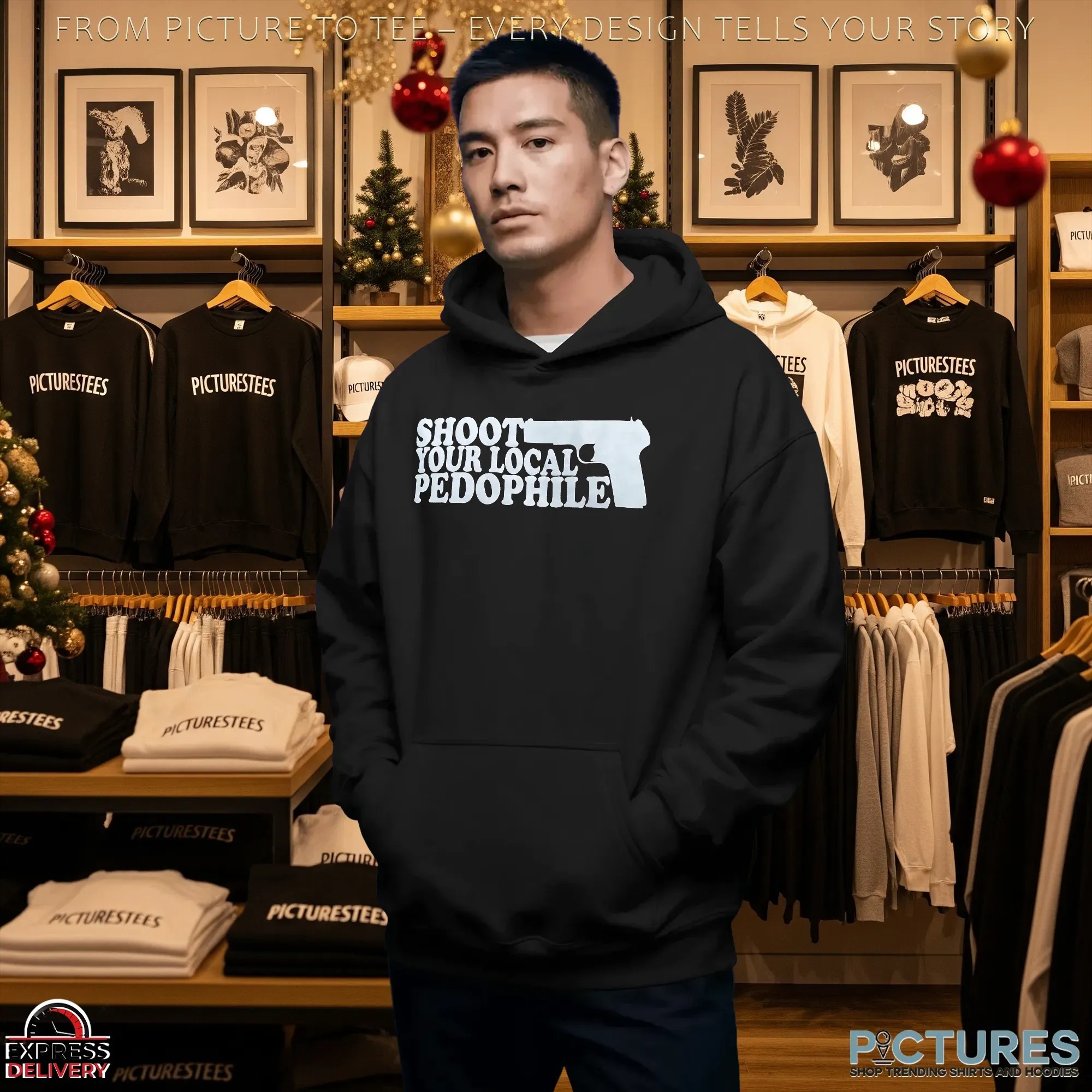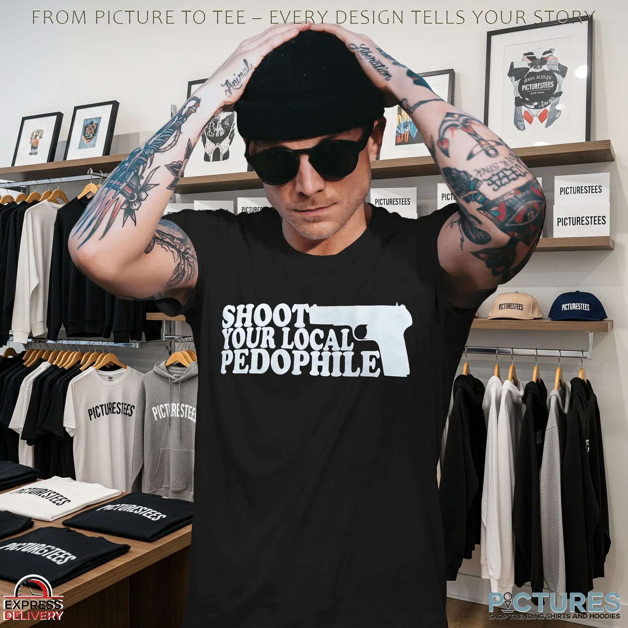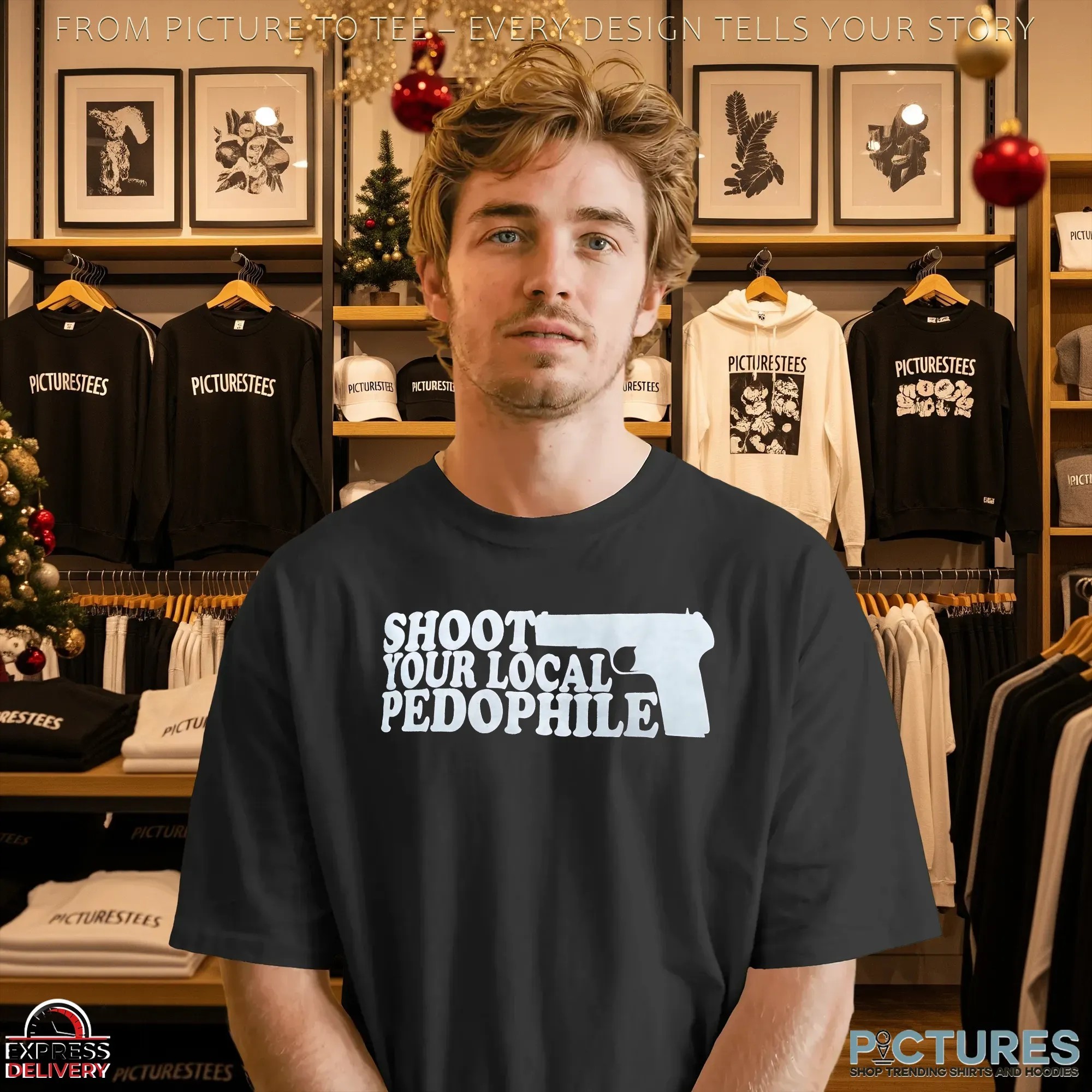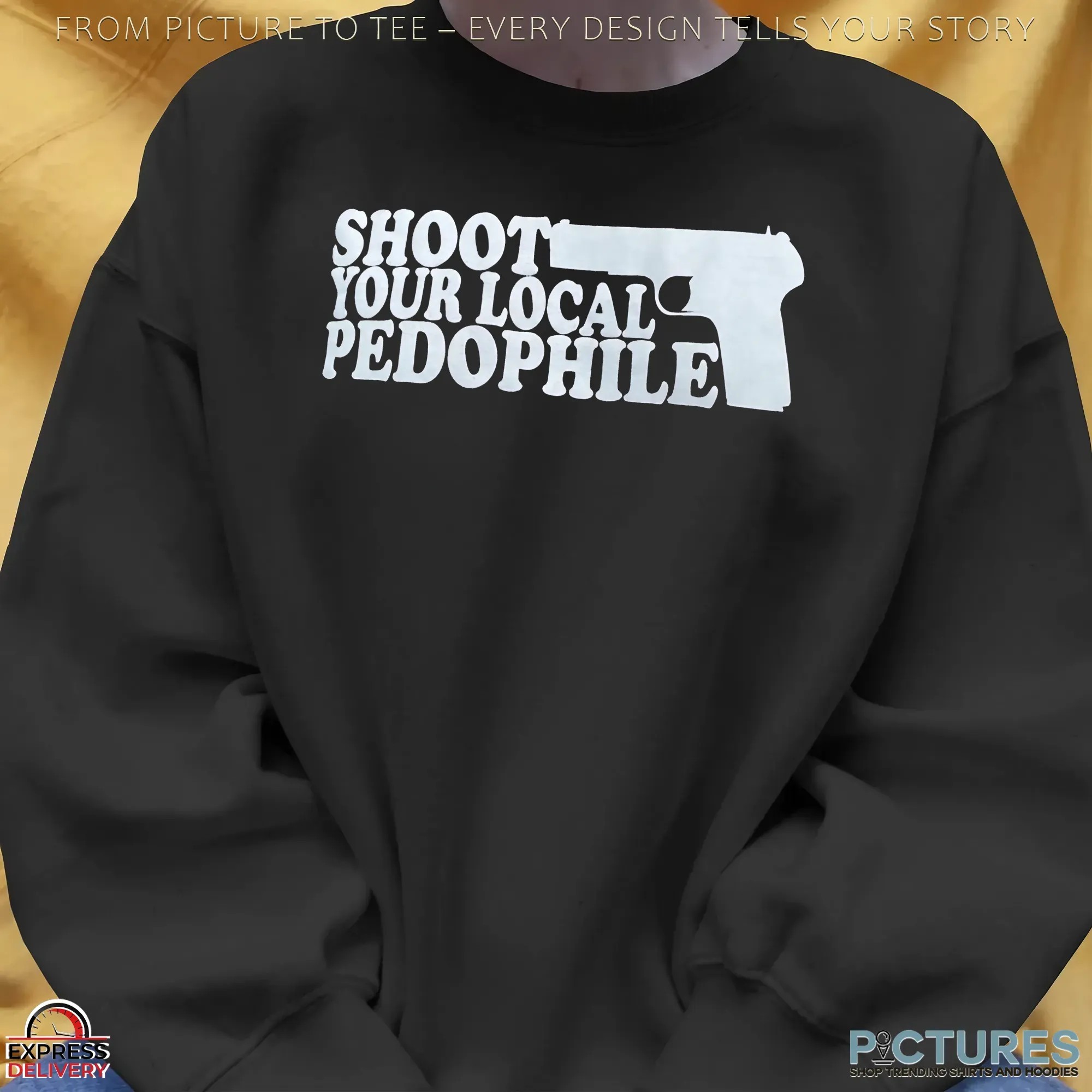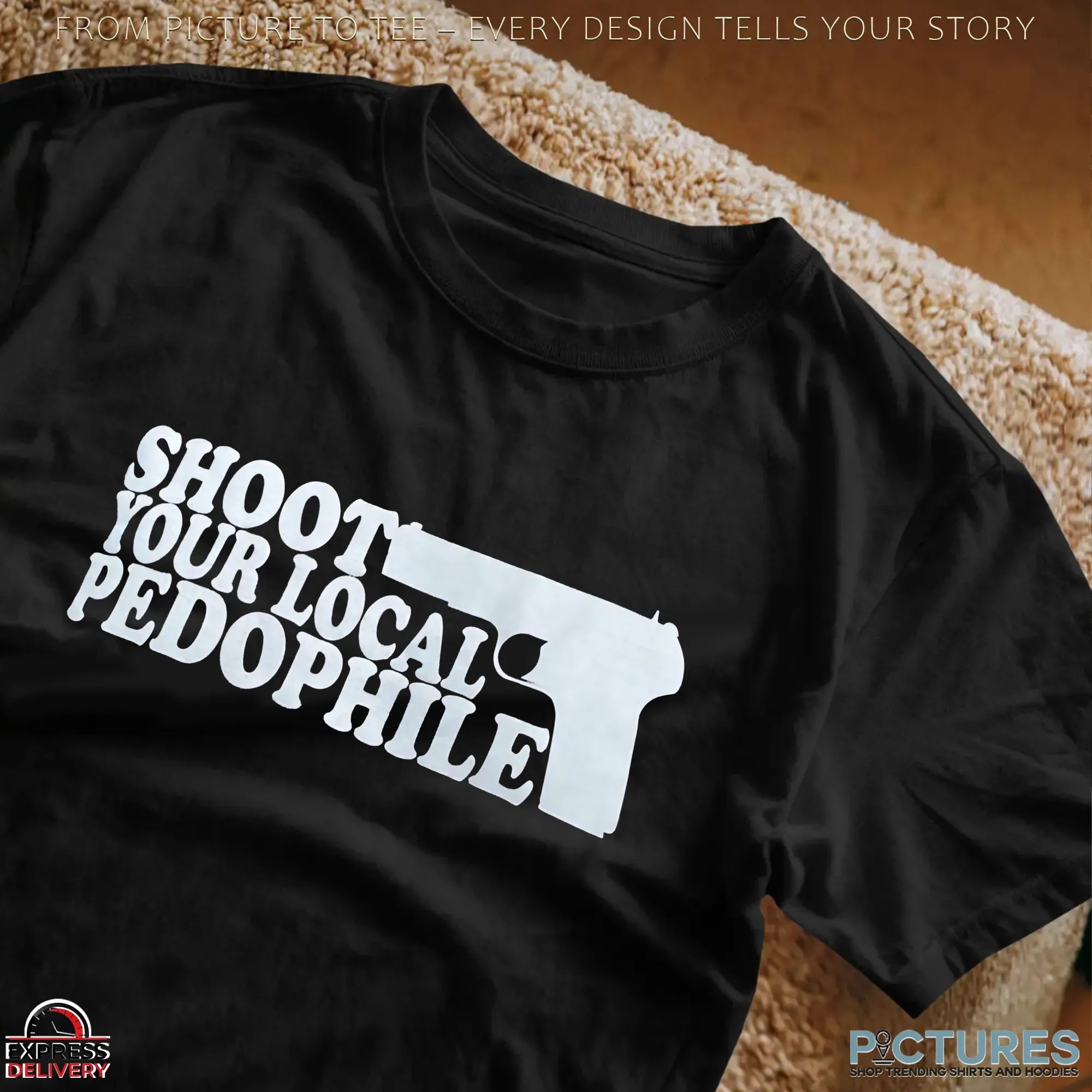 Shoot Your Local Pedophile Graphic Parody T Shirt , hoodie, sweater, cropped tee, long sleeve, v-neck, youth tee, mug