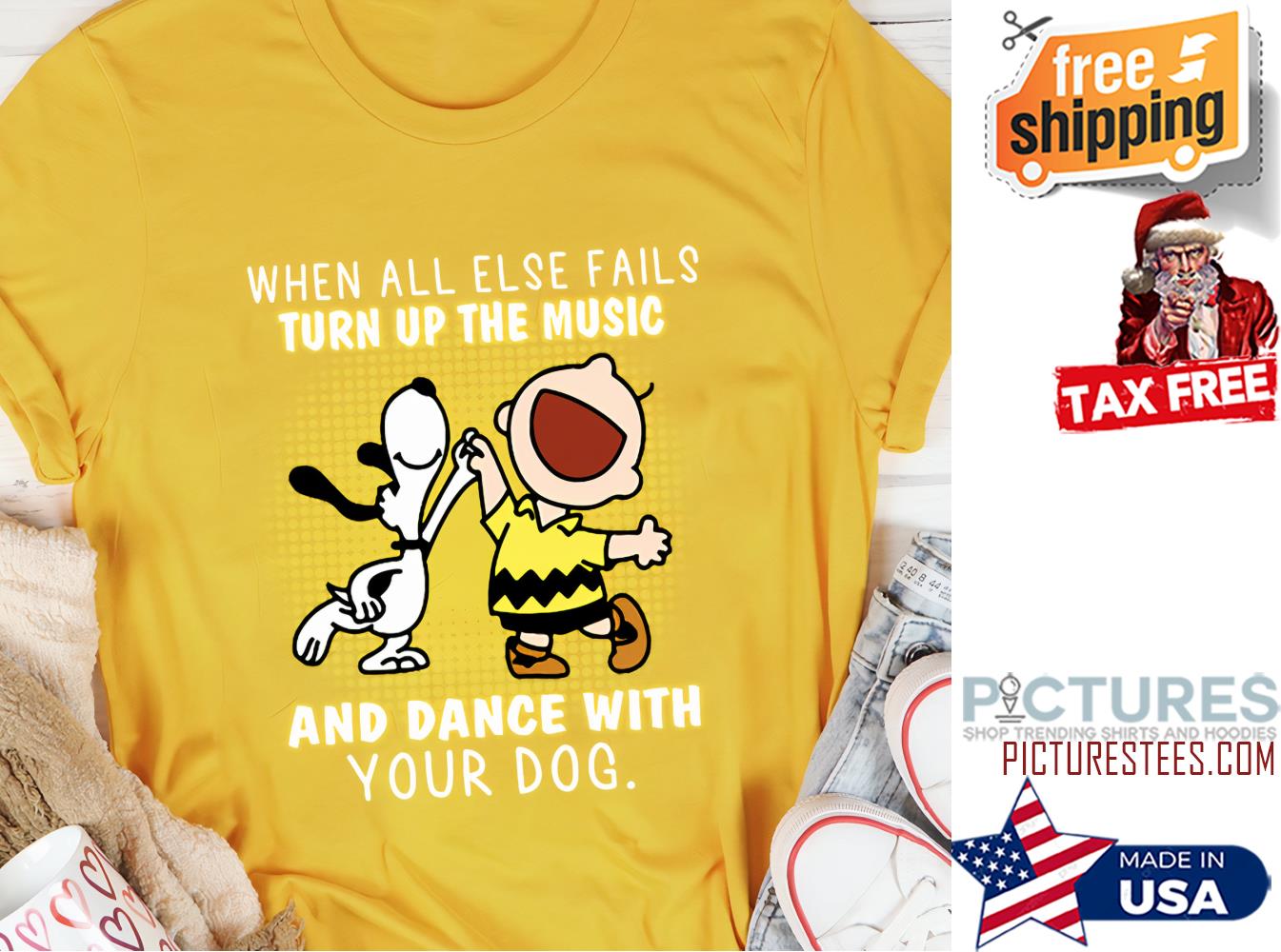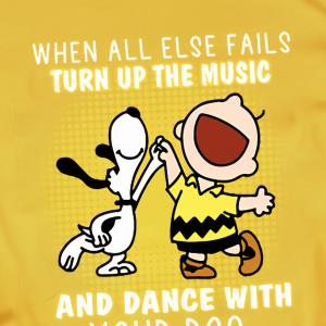Snoopy and Charlie Brown when all else fails turn up the music and dance with your dog shirt